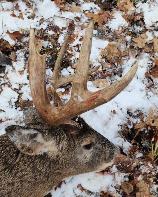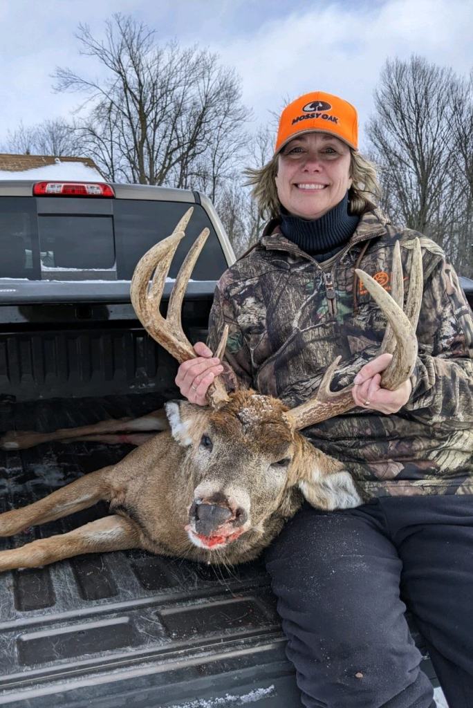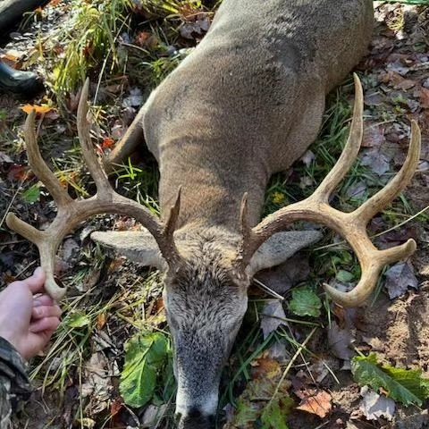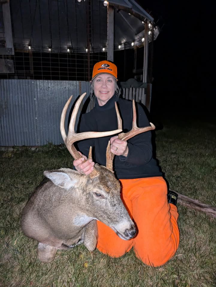 My mom with her 2025 gun buck! We had two years of history with this buck we called “Limp Bizkit”. During the fall of 2024, he sustained a pretty serious leg injury, earning the name. He was a big bodied deer and I am extremely happy my mom got to put her hands on him!