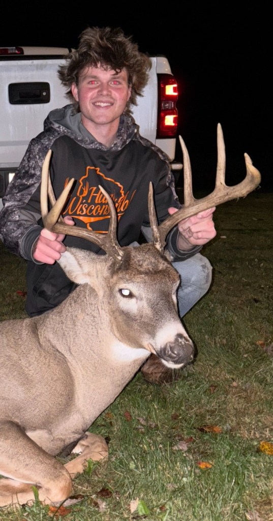 NW Wisconsin Client with his first bow buck, and a danggg nice first bow buck too! Congrats dude!